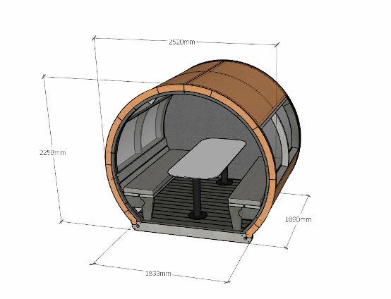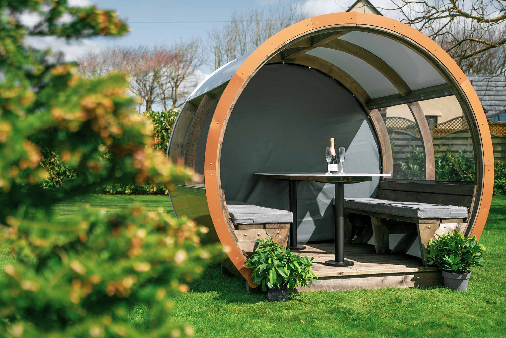 This unique shaped bench and dining area offers you plenty of shade, shelter and comfort. this specially shaped seat can fit into many different alcoves of space in your garden when the available space in your garden might be a crucial factor. All the parts of the CWTCH POD is manufactured from materials ideally suited to the outdoors.
